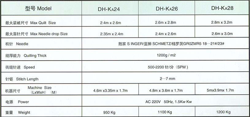 DH-KA系列款是去年推出的目前性?xún)r(jià)比較高的一款絎縫機!上下機頭、分別獨立伺服電機傳動(dòng)無(wú)軸、高速、無(wú)澡音、運營(yíng)平穩、絎縫線(xiàn)跡在ED燈條下光照清晰、機電一體組合方便機器長(cháng)途運輸安全和用戶(hù)自行、日后調整搬運安裝。工控電腦主機、等高性能電器配套、,使用極為方便穩定、花形全功能、線(xiàn)跡精準!機械精度高,斷線(xiàn)故障少,使用存本低。